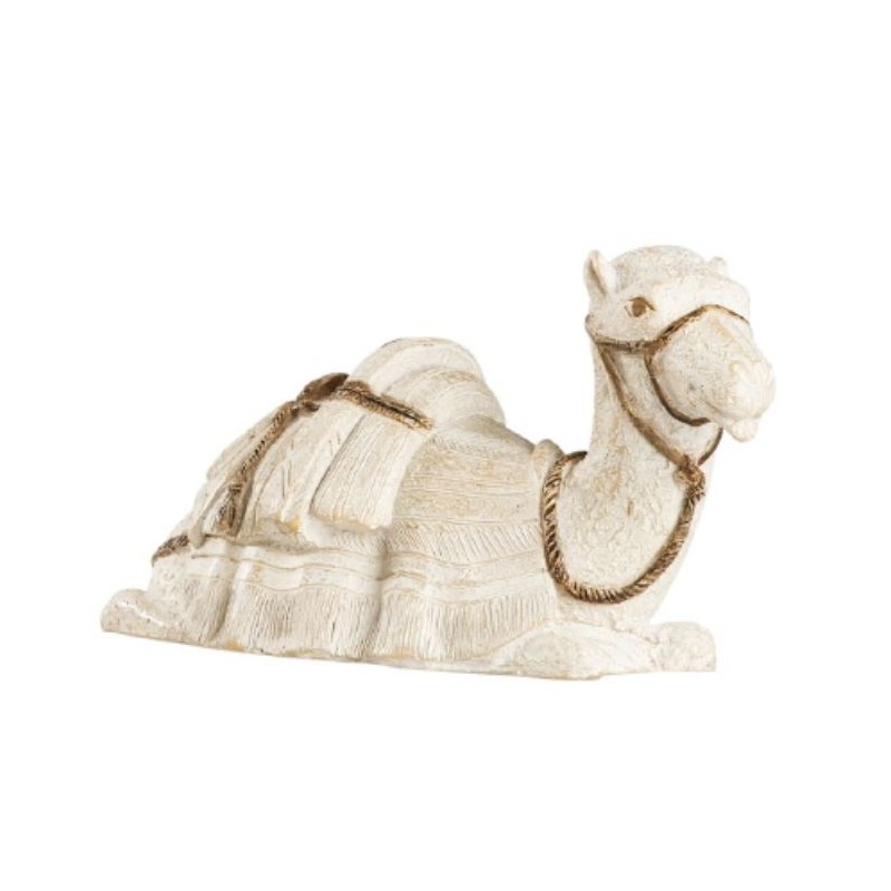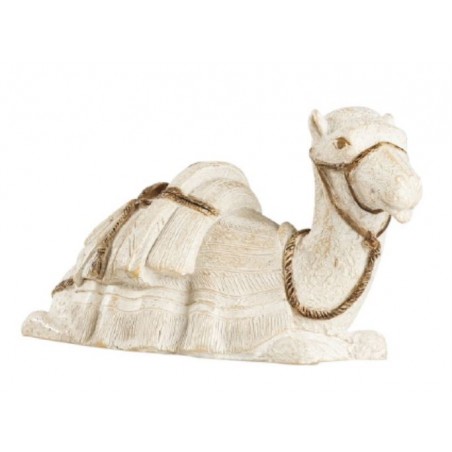 Dromedary lying in white reconstituted stone, made by the Little Sisters of Bethlehem. It measures 8 cm and completes the crib, available in the same collection. Ideal for an original and timeless Christmas decoration.