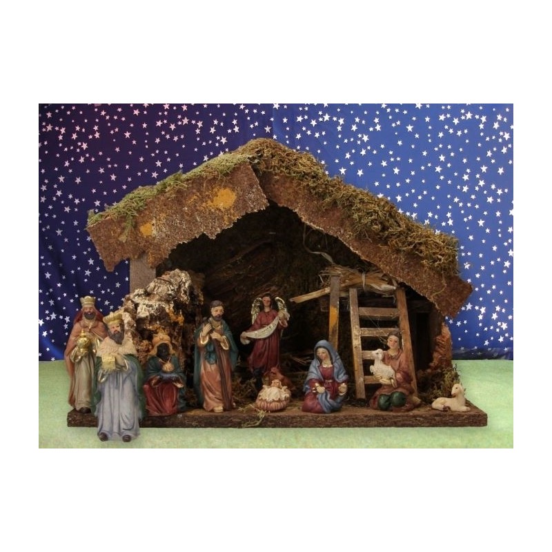 Cabane avec 11 personnages de 9 Cm (32 X 18 X H23 Cm)