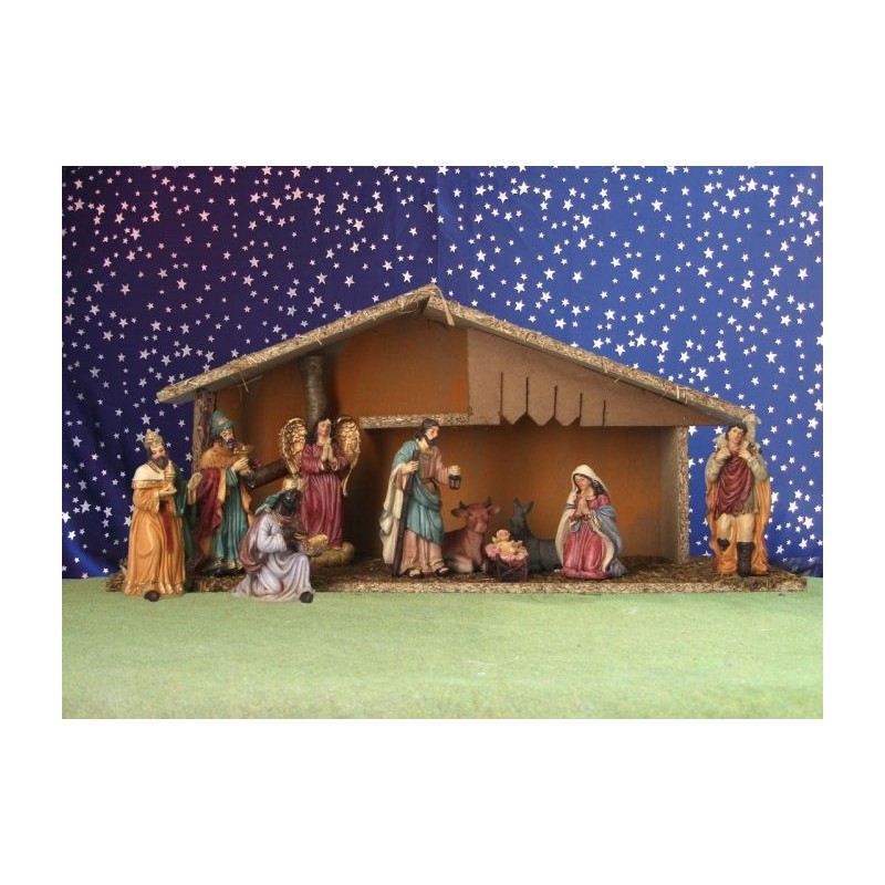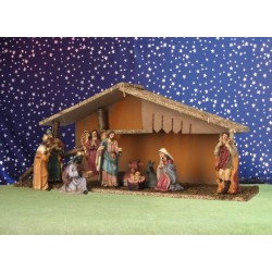 Crèche de Noël : cabane + 10 personnages de 12 cm (52x19x23cm)