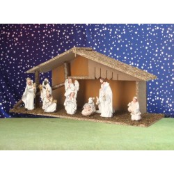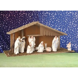 Crèche de Noël : cabane + 11 personnages de 12 cm (52x19x23cm)