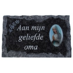 To pay tribute to a deceased relative, we offer many plates of cemeteries with a base. Our funerary plates are all decorated with a medal of Our Lady of Banneux. They are to put on the grave and can be used as little gravestones.