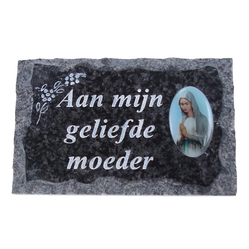 To pay tribute to a deceased relative, we offer many plates of cemeteries with a base. Our funerary plates are all decorated with a medal of Our Lady of Banneux. They are to put on the grave and can be used as little gravestones.