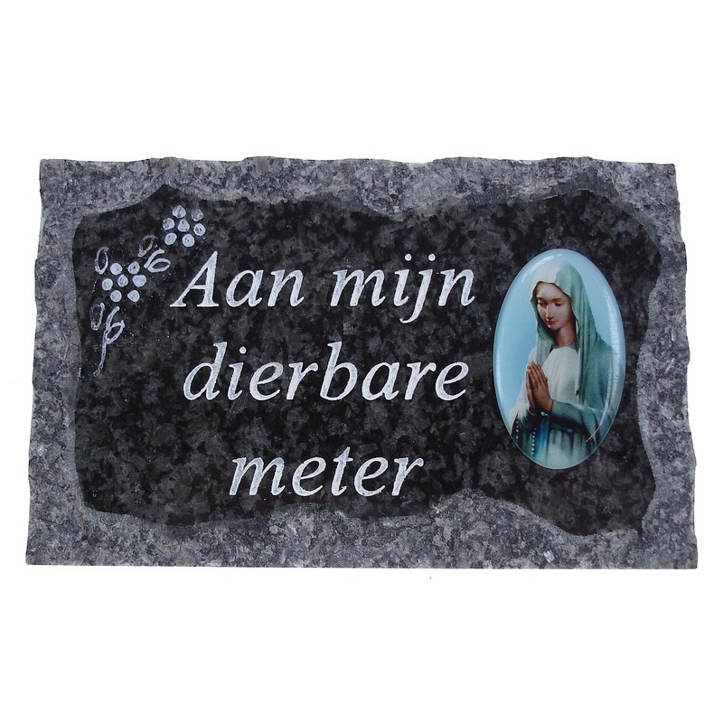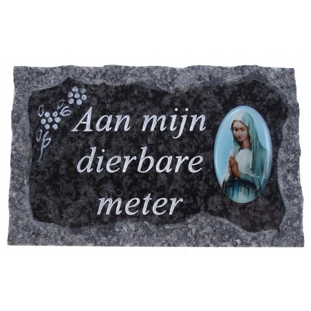 To pay tribute to a deceased relative, we offer many plates of cemeteries with a base. Our funerary plates are all decorated with a medal of Our Lady of Banneux. They are to put on the grave and can be used as little gravestones.