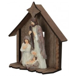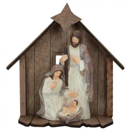 Crib in colored resin, representing the Holy Family in front of a barn. It measures 20 centimeters. It is ideal for a Christmas decoration sober and timeless.