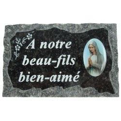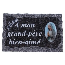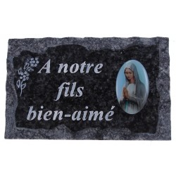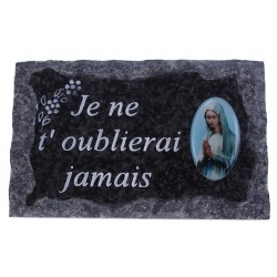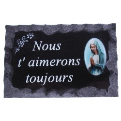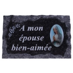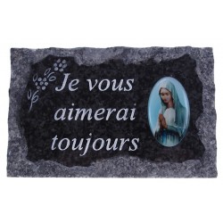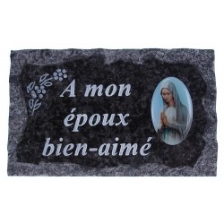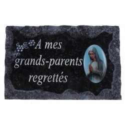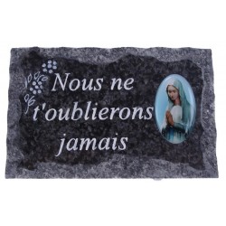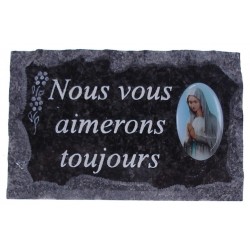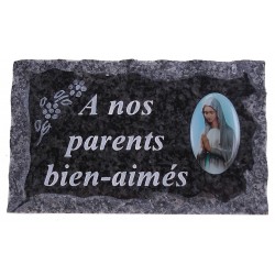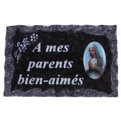 To pay tribute to a deceased relative, we offer many plates of cemeteries with a base. Our funerary plates are all decorated with a medal of Our Lady of Banneux. They are to put on the grave and can be used as little gravestones.