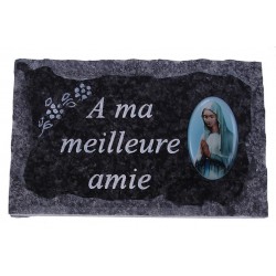 To pay tribute to a deceased relative, we offer many plates of cemeteries with a base. Our funerary plates are all decorated with a medal of Our Lady of Banneux. They are to put on the grave and can be used as little gravestones.