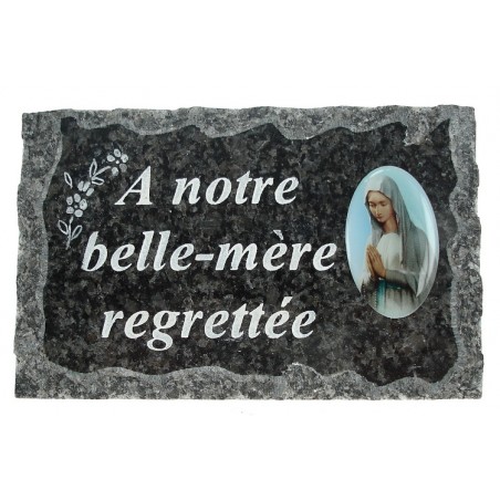 To pay tribute to a deceased relative, we offer many plates of cemeteries with a base. Our funerary plates are all decorated with a medal of Our Lady of Banneux. They are to put on the grave and can be used as little gravestones.