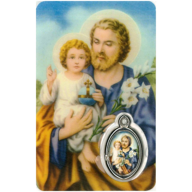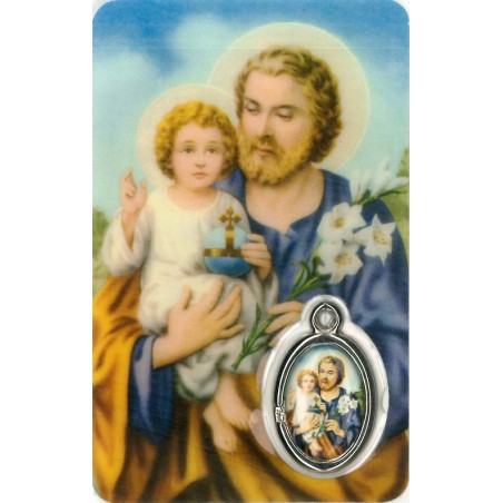 Card with prayer and medal St. Joseph - French