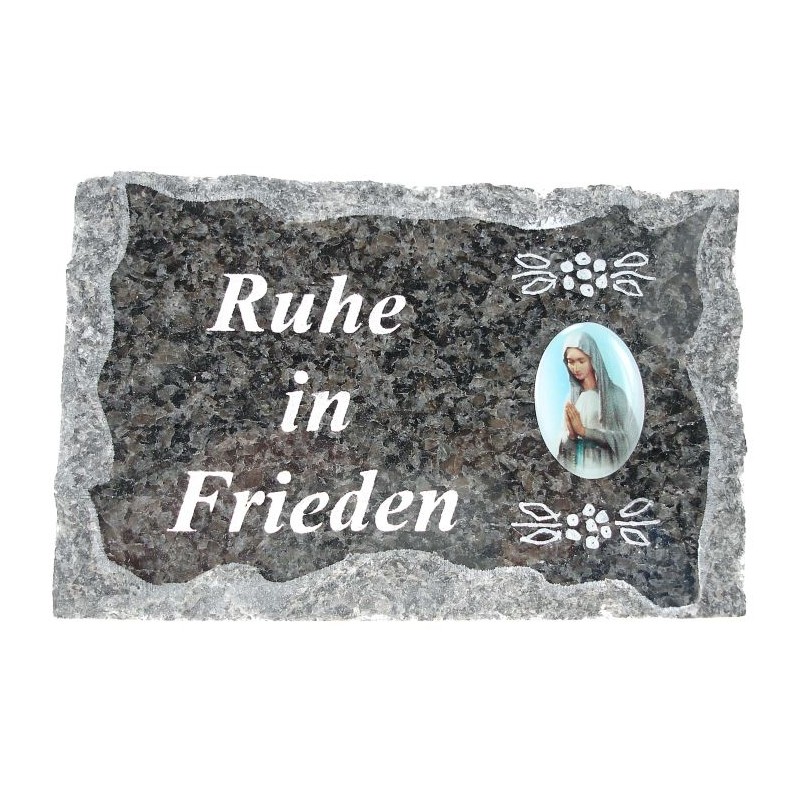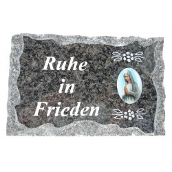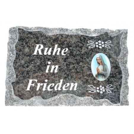 To pay tribute to a deceased relative, we offer many plates of cemeteries with a base. Our funerary plates are all decorated with a medal of Our Lady of Banneux. They are to put on the grave and can be used as little gravestones.