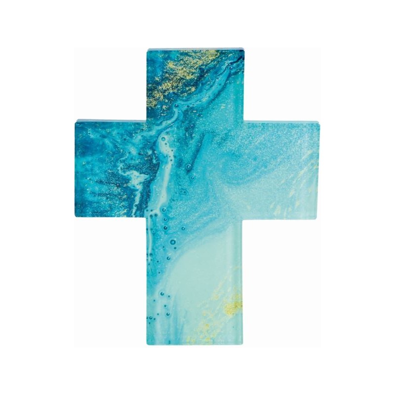 Croix murale verre 11,5 x 14,5 cm Bleu