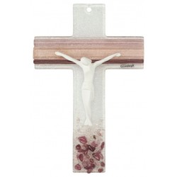 Wall cross 16 Cm white and beige with white Christ