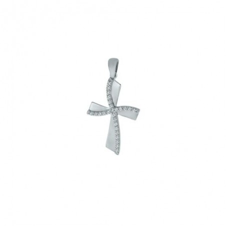 9-karat white gold cross with rhinestones 23 mm 1.6 gr