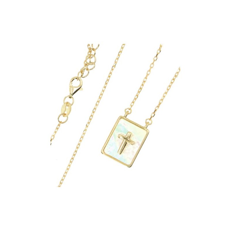 Gold-plated and mother-of-pearl necklace with cross