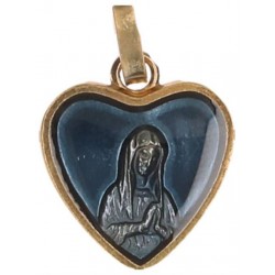 ;medaille;vierge;priante;coeur;email;bleu