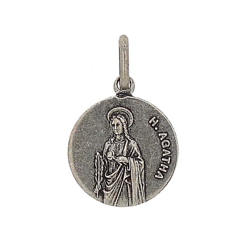 Saint Agatha is invoked against breast cancer by women, and breast pain in general. It can also be invoked against fire. She is the patron saint of nurses. Saint Agatha is represented holding a tray on which breasts are placed with one hand or holding a pincer. Saint Agatha is venerated in Soignies, Bruyelle, Ollignies and Orcq.