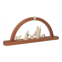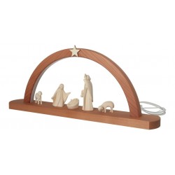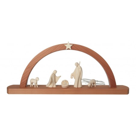 Arch with LED lights and 5-piece nativity scene 10 cm in natural carved wood (19 x 45 cm)