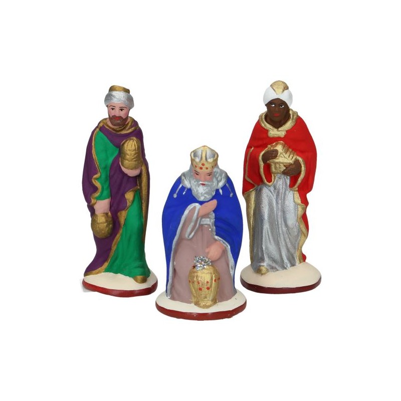 These figurines are made by Gateau shops in Marseille. This group is composed of the three kings Magi (Melchior, Balthazar and Gaspar). & Nbsp;