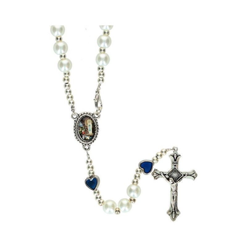 Rosary white pater blue hart