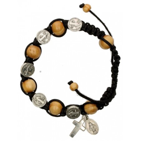 ;bracelet;cord;benedict;olive;wood;metal;medals