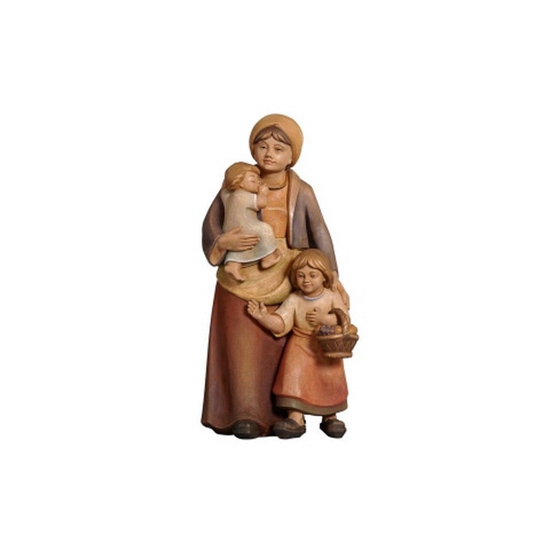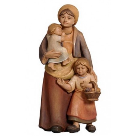 Shepherdess with 2 childeren: wood carving nativity scene Pema 12 cm