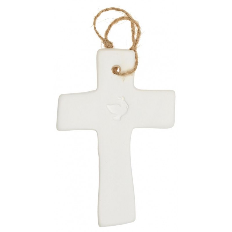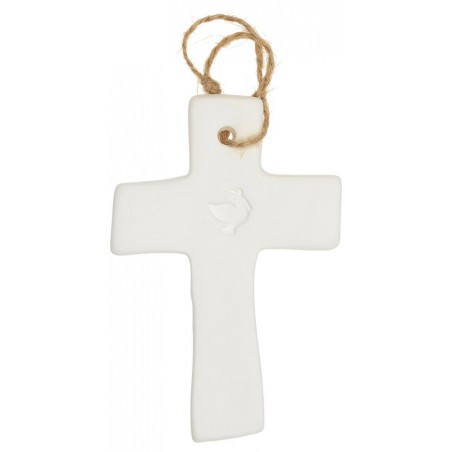 Cross in white porcelain Dove 9.5 x 6.5 cm