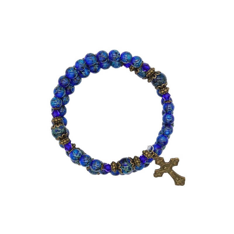 ;braceletchapelet;grains;verres;bleu;fonce;medaille;miraculeuse;croix;bronzes