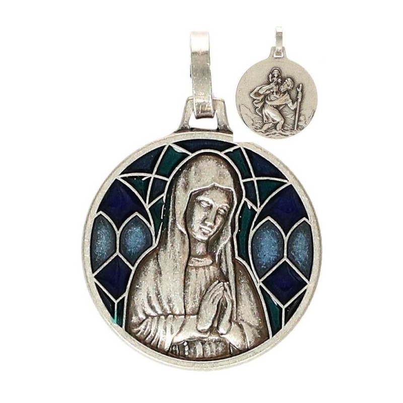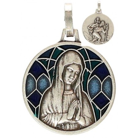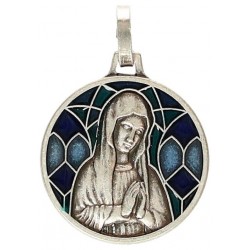 Médaille 18 mm - Vierge priante - Métal avec email bleu
