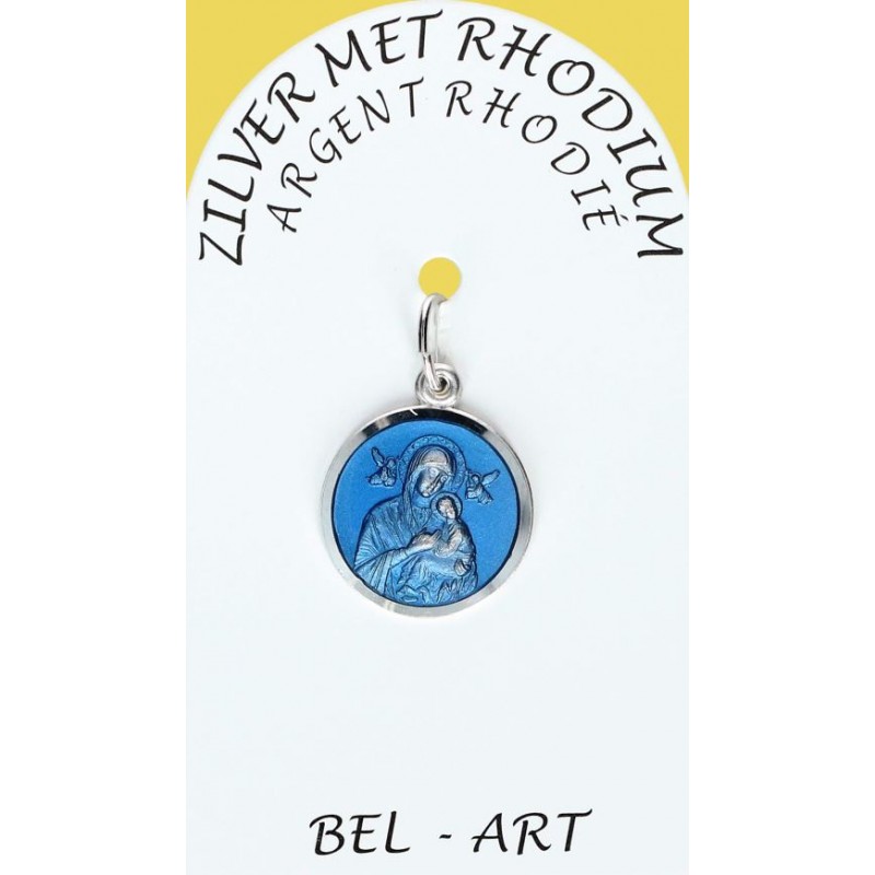 Rhodium Silver Medal Our Lady of Perpetual help. Dry. 14 mm Blue Email