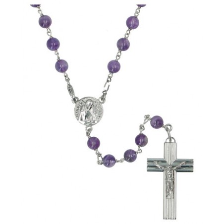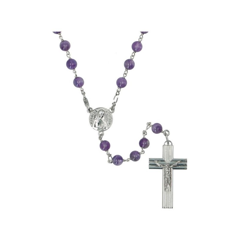 Rhodium Silver Rosary 6mm Amethyst & nbsp; & nbsp;