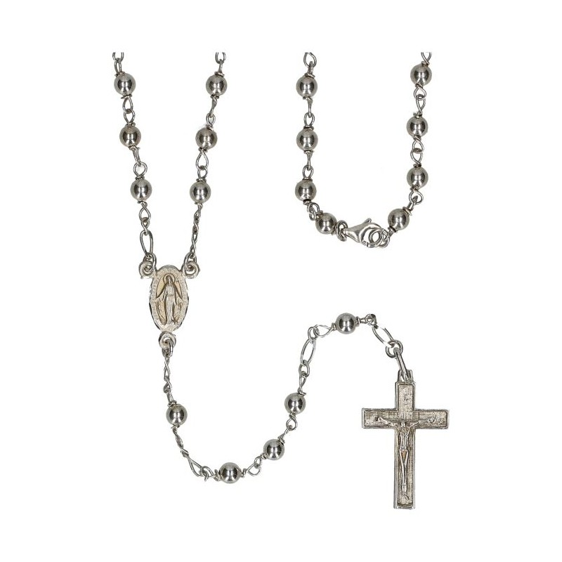 Rosary Silver Rhodium 4mm carabiner