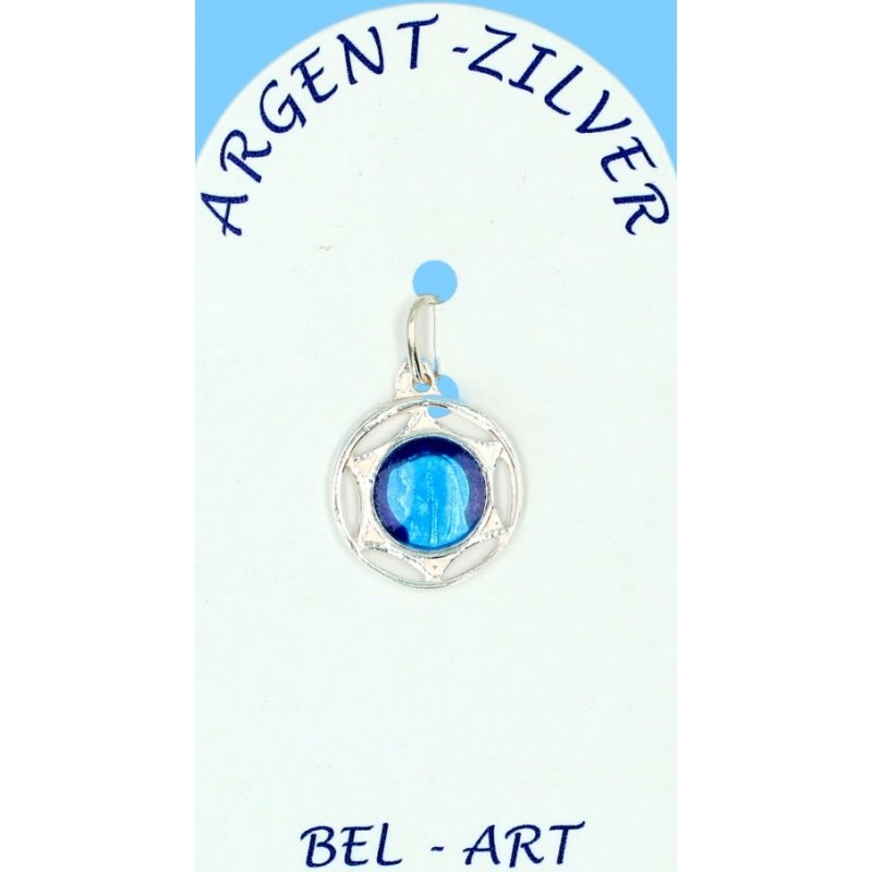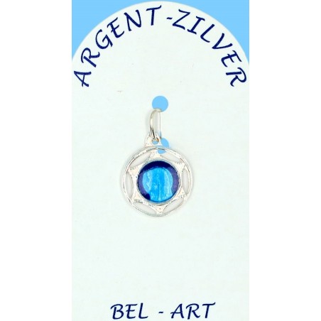 Médaille 13 mm Vierge / Dentelle - Argent émail bleu
