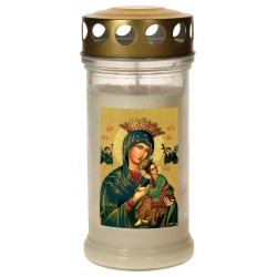 Candle in glass with golden metal lid - white - Perputual Help - 10 pieces per box