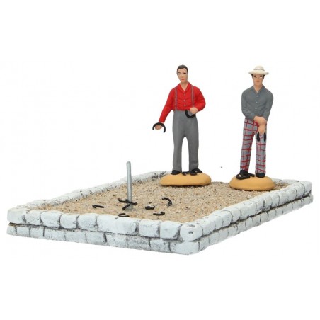 Décor pour santons de Provence - 2 Joueurs de fer à cheval + terrain