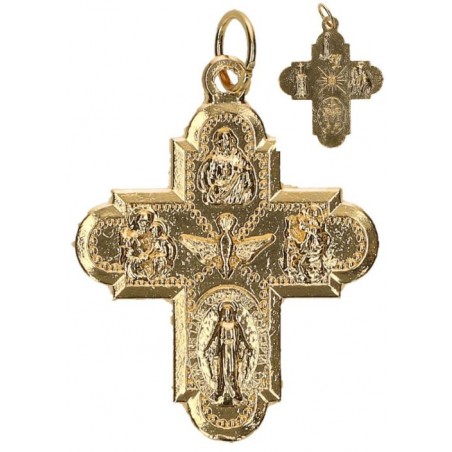 Cross various Saints 26 mm golden metal