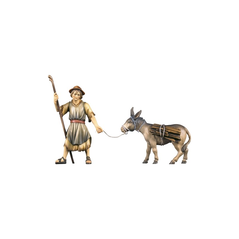 Shepherd with donkey with wood : Wood carved christmas nativity Ulrich 15 cm (5,9 inches)