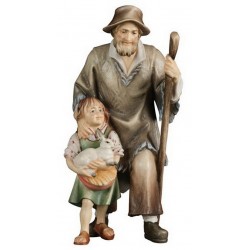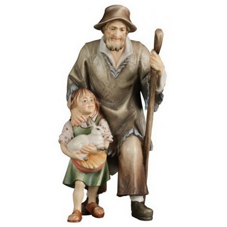 Shepherd with litlle girl : Wood carved christmas nativity Ulrich 15 cm (5,9 inches)