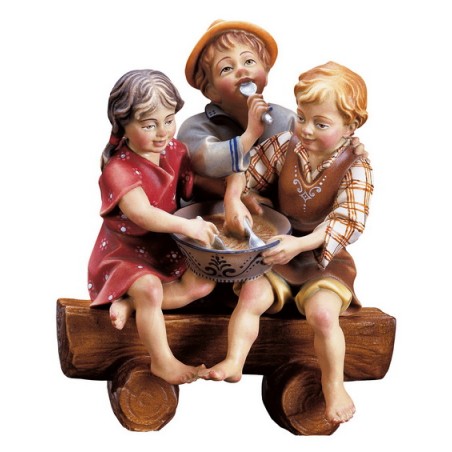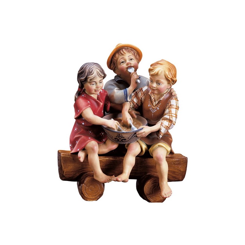 Children / bench : Wood carved christmas nativity Ulrich 15 cm (5,9 inches)