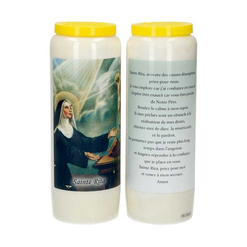 The 9 days candle is always white but the color of the plastic can vary : red 9 days candles, blue 9 days candles,..