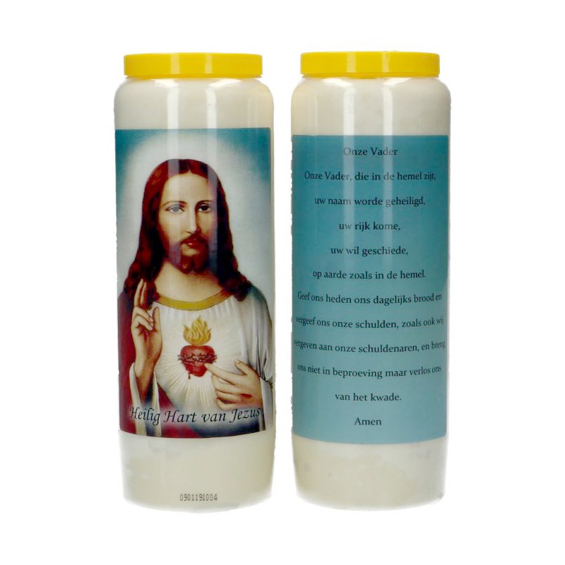 9 days candle / white / Sacred Heart / prayertext in Dutch