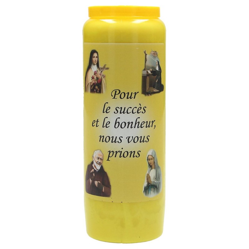 The 9 days candle is always white but the color of the plastic can vary : red 9 days candles, blue 9 days candles,..
