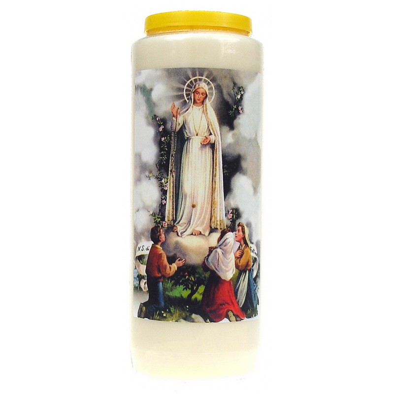 The 9 days candle is always white but the color of the plastic can vary : red 9 days candles, blue 9 days candles,..
