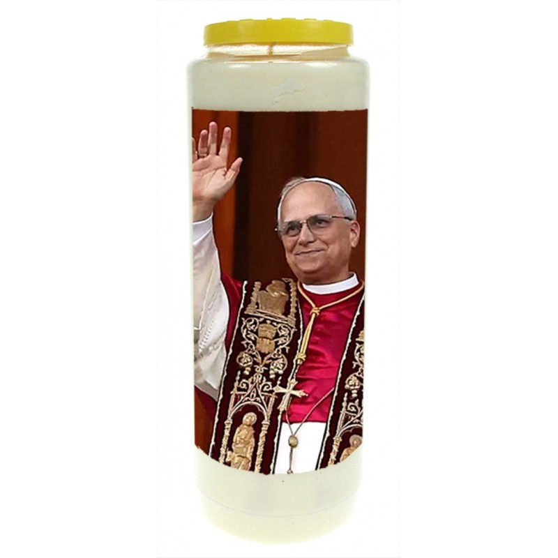The 9 days candle is always white but the color of the plastic can vary : red 9 days candles, blue 9 days candles,..