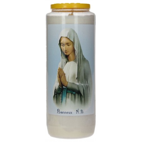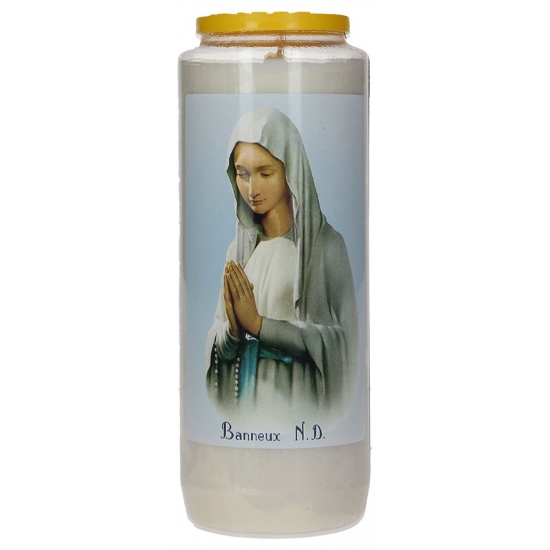 The 9 days candle is always white but the color of the plastic can vary : red 9 days candles, blue 9 days candles,..