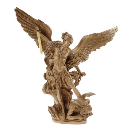 Statue 40 cm St michael stained with a light brown wood stain and polished with wax