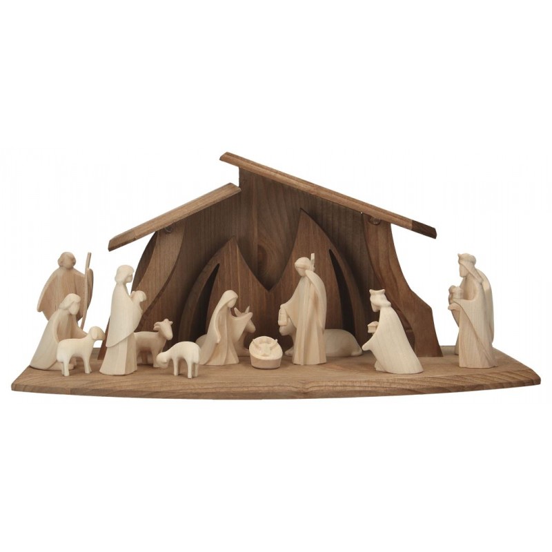 Crèche de Noël en bois avec cabane et 15 personnages de 07cm