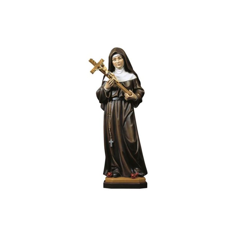 Woodcarving statue of Saint Rita of Cascia with Crucifix 12 cm colored
