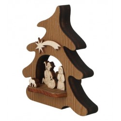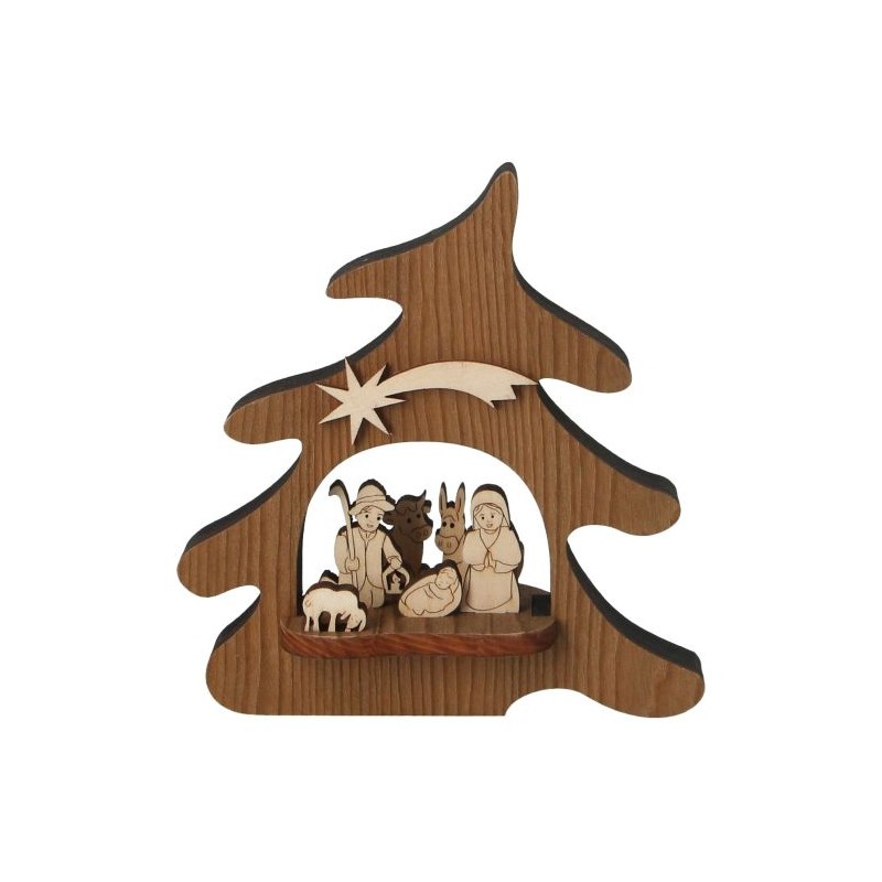 Nativity with wooden tree H 12 cm