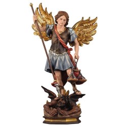 Woodcarving statue of Saint Michael Archangel with scales 27 cm colored