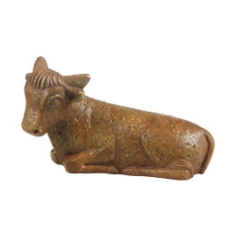 Bœuf en pierre reconstituée colorée, fabriqué par les Petites Sœurs de Bethléem. Il mesure 6,5 cm et vient compléter la crèche, disponible dans la même collection. Idéal pour une décoration de Noël originale et intemporelle.
