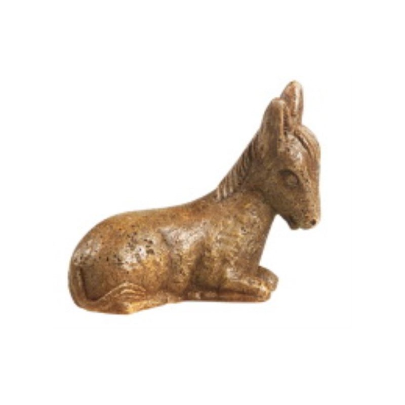 Ane en pierre reconstituée colorée, fabriqué par les Petites Sœurs de Bethléem. Il mesure 8 cm et vient compléter la crèche, disponible dans la même collection. Idéal pour une décoration de Noël originale et intemporelle.